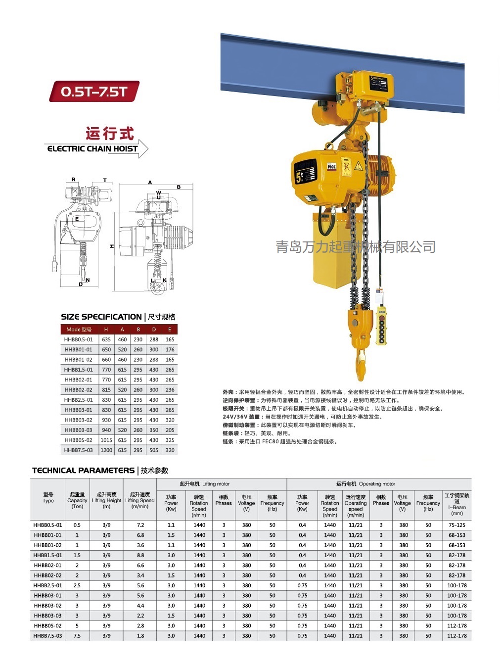極限開關(guān):吊上吊下都有開關(guān)裝置,使自動停止,防止鏈條超出,確保安全。