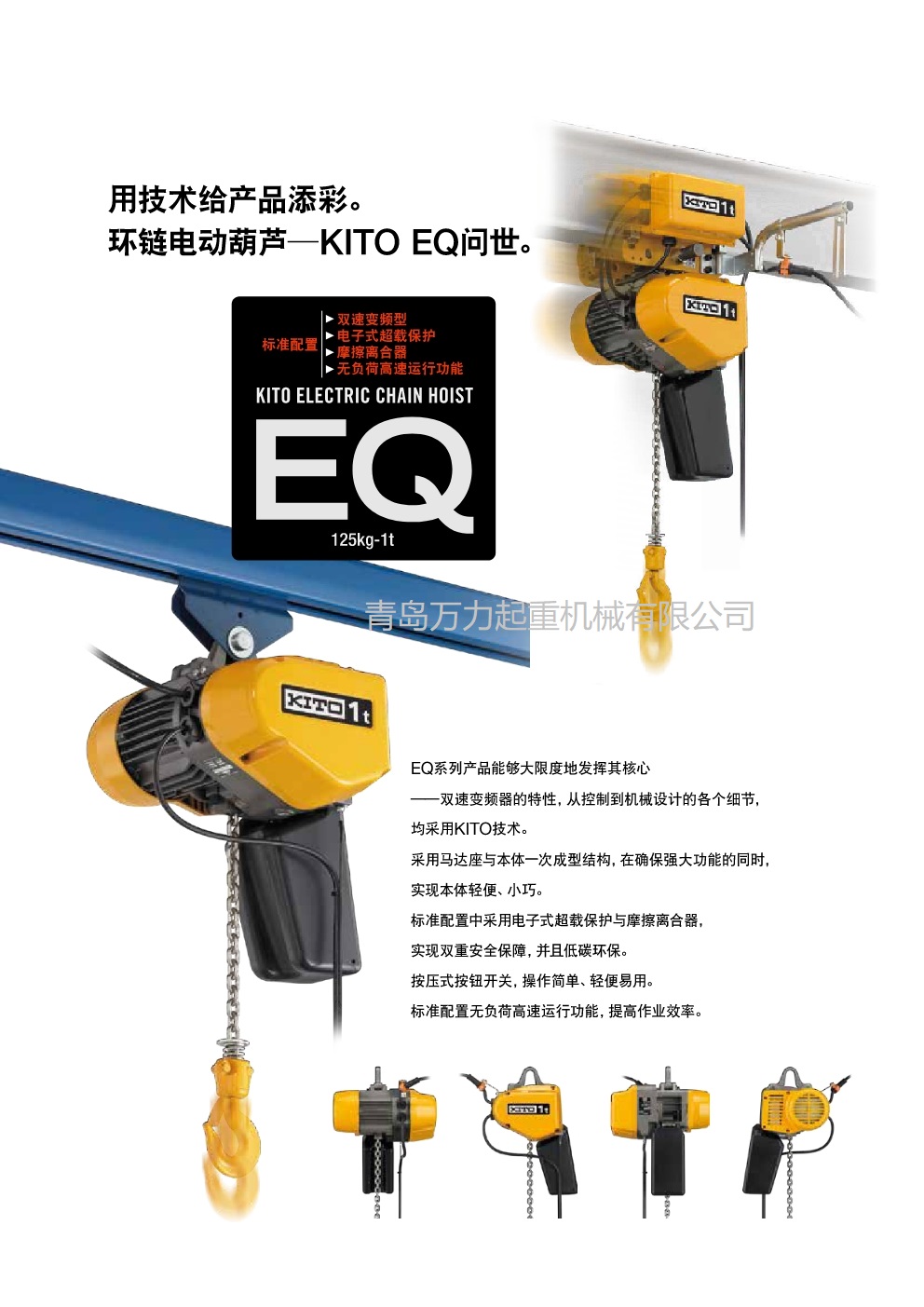 用技術豐富應用產品款式。環(huán)鏈電動葫蘆-KITO EQ問世。