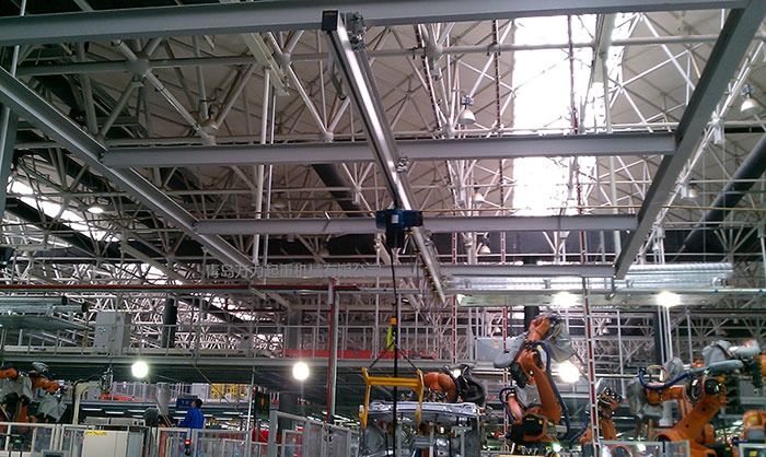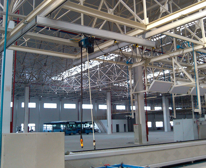 鋁合金軌道組合式起重機(jī)械系統(tǒng)需要客戶(hù)的廠(chǎng)房屋頂結(jié)構(gòu)可承受足夠強(qiáng)度、安全支撐起重機(jī)負(fù)載;