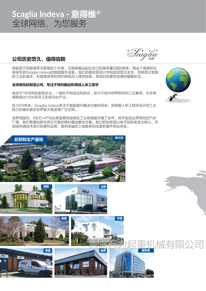 1、Scaglia集團成立于1838年,專注于物料搬運及工業(yè)操縱器,INDEVA自1975年開始開發(fā)和生產(chǎn)了世界上第一臺電子智能助力機械手。